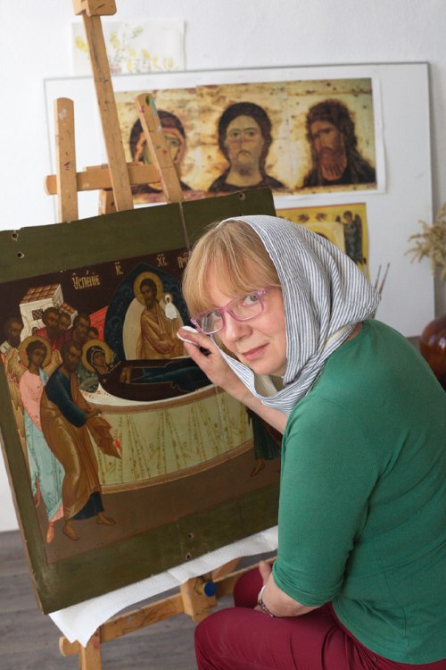 Wir verwenden Blattgold und Naturpigmente (Zinnober, Azurit, Lapislazuli, Auripigment u.a.). Einhaltung der altertümlichen Technologien sowie mehrjährige Erfahrung in der Ikonenmalerei und Restauration garantieren eine qualitative Auftragserfüllung. Möchten Sie eine Ikone begutachten und/oder restaurieren lassen, klicken Sie bitte hier.