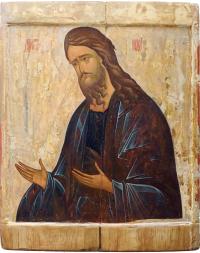 One of the most honoured Saints after the Mother of God. He started preaching his sermon about baptizing by confession in 29 AD. According to the evangelists he is the immediate predecessor of Jesus Christ. He is depicted on the icon in the ascetic garments in a devotional attitude.
