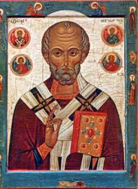 Saint Nicholas, Bishop of Myra (Minor Asia), Defender of Orthodoxy, Holy Hierarch is honoured both in the East and in the West as a great Wonderworker. He participated in the First Ecumenical Council in 325 AD. Died in 345 AD. In 1087, his relics were furtively translated from Myra to Bari (Southern Italy) where they reside up to these this day.