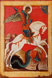 The Holy Great Martyr George (lat. Saint George) - is a legendary Christian saint who, according to legend, suffered martyrdom under Emperor Diocletian and was beheaded after eight days of martyrdom. One of the most famous stories about his miracles is "The Battle with Dragons". In Orthodox churches he is called George the Victorious.