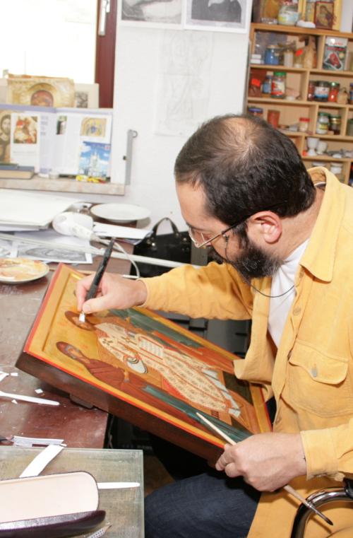 die Ikone des Erlöser, die Sie für mich gemalt haben, hat ihren Platz in meinem Arbeitszimmer gefunden, so dass ich sie vom Schreibtisch aus immer sehen kann. Noch vor allen anderen Darstellungsweisen hat mich das Gesicht des Erlösers von Rublev seit jeher besonders angesprochen.